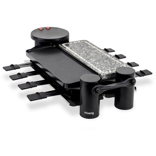 Genießen Sie gemütliche Raclette- Abendemit diesem hochwertig verarbeteten Tischgrill der Marke H.Koenig.Das Besondere: Dieser Elektrogrill kann aufgrund desDrehgelenks frei positioniert werden und bietet so dieMöglichkeit der individuellen Austellung.Auf einer Seite bietet dieses Raclette zuden eineantihaftbeschichtete Grillplatte, die Andere ist mit einer Steinplatteausgestattet. Zur leichten Reinigung sind die Platten jeweils abnehmbar.So haben Sie Raclette, Tischgrill und einen HeißenStein in einmem Gerät.Jede Seite hat einen eigenen Ein- / Ausschalter.Dieses Elektro-Raklette wird mit 8 antihaftbeschichtetenPfännchen geliefert.Bereiten Sie mit bis zu acht Personen leckereüberbackene Speisen zu und grillen Sie sich aufdem heißen Stein oder der Grillpklatte Fleisch,Gemüse und mehr.Die schöne Optik macht diesen Tischgrill zu einemechten Hingucker.Nicht nur aber besonders zu Weihnachten oder Silvester erfreutsich Raclette immer großer Beliebtheit.Einem gemütlichen Raklette-Abend ingemütlicher Atmosphäre steht mit diesemschön designten Marken-Gerät nichts mehr im Wege.Beschreibung/Daten:H.KoenigRaclette mit Drehgelenk- Für bis zu 8 Personen - 8 antihaftbeschichtete Pfännchen - Stein-Kochplatte mit Saftrille - antihaftbeschichtete Grillplatte - Platten zur einfachen Reinigung abnehmbar - 8 Spatel aus Holz - 2 Ein-/Ausschalter (jedee Seite einzlen schaltbar) - Betriebskontrollleuchten - Überhitzungsschutz - Spannungsversorgung: 220-240 V, 50/60Hz - Leistungsaufnahme: 1200 Watt - Lieferumfang: 1 x Raclette (Ohne Dekoration undLebensmittel!) Sie sind auf der Suche nach einem Raclette, das sich Ihren Bedürfnissen anpasst? Das neue HKoenig RP360 Raclette bietet optimale Zugänglichkeit für bis zu 8 Personen. Dank seinem 360° Drehgelenk können Sie die 2 Raclette-Teile entweder komplett der Länge nach aufgeklappt, komplett geschlossen oder in jedem Winkel geöffnet platzieren und sicherstellen, dass jeder problemlos Zugang hat. Somit erreicht jeder Gast auch an einer langen Tafel sein Raclette-Pfännchen.Produktdetails4 Funktionen: Raclette, Grill, Pancakes, WarmhaltefunktionAustauschbare Grill/WarmhalteplatteIndividueller Ein/Ausschaltknopf für beide GrillsInklusive 8 Raclette-PfännchenInklusive 8 HolzschieberEin/Aus-SchalterLeicht zu reinigenSpannungsversorgung: 220-240 V ; 50-60HzLeistung: 1200 WMaße: 30,0 x 60,0 x 18.5 cm Mit dem H.Koenig RP360 Raclette ist Ihnen ein gemütlicher Abend in großer Runde sicher.Dank seinem 360° Drehgelenk können Sie die 2 Raclette-Teile entweder komplett der Länge nach aufgeklappt, komplett geschlossen oder in jedem Winkel geöffnet platzieren und sicherstellen, dass jeder problemlos Zugang hat.Genießen Sie ganze 4 Funktionen mit nur einem Gerät:Raclette für 8 PersonenGrillPancakesWarmhaltefunktion 360° DrehgelenkLeistung: 1200 WattMaterial: Edelstahl rostfrei, KunststoffAbnehm- und austauschbare Grill-/WarmhalteplatteIndividueller Ein-/Ausschaltknopf für beide Grills.Maße: 60 x 30 x 18,5 cmGewicht: 4,65 Kg Dieses Gourmet Raclette ist ideal für das Schlemmen in gemütlicher Runde. Außergewöhnlich und praktisch ist die Klappfunktion, die bis 180° geklappt werden kann.Es ermöglicht verschiedene Zubereitungsarten und garen oder überbacken in den acht großen Pfännchen.Das Raclette RP360 bietet Ihnen:8 PfännchenGeeignet für bis zu 8 PersonenEin-/Ausschalter für jede PlatteAbnehm- und Austauschbare Grill/WarmhalteplattePfännchen sind antihaftbeschichtet und dadurch leicht zu reinigenÜberhitzungsschutz1200 Watt Leistung Anzahl der Personen:8 Person(en)Teflonbeschichtet:JaEin-/Ausschalter:JaProduktfarbe:SchwarzEntfernbare Platten:JaSteuerung:TastenLeistung:1200 WBreite:550 mmTiefe:250 mmHöhe:130 mmGewicht:2,81 kgVerpackungsbreite:180 mmVerpackungstiefe:300 mmVerpackungshöhe:600 mmPaketgewicht:5,71 kgAnzahl der Pfannen:8 Stück(e)Anzahl enthaltener Spatel:8 Anzahl Raclettepfännchen:8Produkttyp:Kombigerät "Raclette für 8 Personen, Natursteinbratpfanne und Grill, ideal für die Zubereitung von Fleisch, Fisch und Gemüse