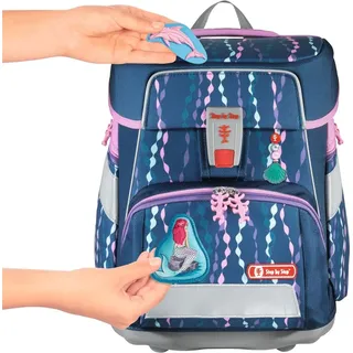 Das Allround-Talent für die Grundschule - alles dabei für den perfekten Schulalltag!Der SPACE ist der geräumige Schulranzen von Step by Step. Er ist dank dem EASY GROW SYSTEM höhenverstellbar, wodurch eine perfekt Passform über mehrere Jahre gewährleistet wird. Durch die wechselbaren Motive kann der Schulranzen stets dem Traum-Motiv angepasst werden, so gefällt er Mädchen und Jungen von der 1. bis zur 4. Klasse.Lieferumfang 5-teiliges Set, bestehend aus: - 1 Schulranzen - 1 Federmäppchen, komplett bestückt mit Markenstiften - 7 Jumbo-Markenstifte - 12 Farb-Markenstifte - 1 Bleistift - 1 Step by Step Lineal - 1 Step by Step Geodreieck - 1 Step by Step Doppelspitzer - 1 Radiergummi - 1 Schlampermäppchen - 1 Turnbeutel - 1 Set MAGIC MAGS (2 Applikationen und 1 Anhänger)Tragekomfort/Ergonnomie - Anatomisch geformte Schulterträger, höhenverstellbar (EASY GROW SYSTEM) - Lageverstellriemen - Höhenverstellbarer Brustgurt - Abnehmbarer Hüftgurt - Vorgeformtes, weiches Rückenpolster Verstaumöglichkeiten - Hauptfach, Vordertasche, zwei Seitentaschen mit Reißverschluss und Auslaufösen - Gummibänder zur Fixierung des Federmäppchens unter dem Deckel - Inneneinteiler mit Gummizug für BücherWeitere Features - Leicht bedienbarer Fidlock-Magnetverschluss - Aufhängungen zum Verstauen der Enden der Schulterriemen - Aufhängeschlaufe - Tragegriff - Namens- und Adressfeld im Deckel - Kleines Fach mit Schlüsselanhänger im HauptfachSicherheit - Reflektierende Elemente aus an Fronttasche, Seitentaschen und SchultergurtenDer geräumige Schulranzen!Das Allround-Talent für die Grundschule - alles dabei für den perfekten Shulalltag!Platzwunder mit 20 Litern VolumenKomfortable BegleiterFür alle GrundschülerIn Hauptfach, Vordertasche und zwei Seitentaschen mit Auslaufösen passt von Schulbüchern bis zur Trinkflasche aller rein, was Dein Kind für den Alltag in der Grundschule braucht. Der SPACE bringt gerade einal ca. 1250g Eigengewicht (Schulranzenkorpus ohne abnehmbare Elemente) auf die Waage - das schont dern Rücken Deines Kindes, auch bei einem längeren Schulweg. Der SPACE ist mit seiner altersgerechten Konstruktion ein Allrounder für alle Kinder - von 100 bis 150cm Körpergröße, also der optimale Begleiter von der 1. bis zur 4. Klasse.ErgonomieDer Schulranzen von der Einschulung bis zur 4. Klasse – wächst mit und sitzt immer optimal!EASY GROW SYSTEMBreite SchultergurteAbnehmbarer Brust-und HüftgurtMit dem EASY GROW SYSTEM lässt sich die Höhe der Schultergurte sowie die Rückenlänge des Schulranzens direkt auf dem Kinderrücken individuell anpassen - von 100 bis 150 cm Körpergröße. Die anatomisch geformten Schulterträger sorgen für einen optimalen Sitz sowie bequemen Tragekomfort, auch bei langen Schulwegen. Der höhenverstellbare Brustgurt sowie der Hüftgurt stellen sicher, dass das Gewicht des Schulranzens von den Schultern genommen und auf den ganzen Körper verteilt wird.Atmungsaktives RückenpolsterAGR zertifiziertMit gepolstertem TragegriffDas ergonomisch vorgeformte, weiche Rückenpolster aus atmungsaktivem Material ermöglicht einen bequemen Sitz, ohne dabei zu schwitzen und entlastet den Körper in jeder Wachstumsphase. Der SPACE ist ausgezeichnet mit dem Gütesiegel der Aktion Gesunder Rücken (AGR). Mit dem gepolsterten Tragegriff kann der Schulranzen bequem in der Hand getragen werden, z.B. auf dem Weg zum Bus oder zum Auto.DesignSo farbenfroh und individuell wie Dein Kind – Trendige Designs mit einzigartigen Details!Für eienen einzigartigen SchulranzenImmer optimal sichtbarKindgerechtes DesignMAGIC MAGS machen den Grundschulranzen bunt und individuell: die wechselbaren Motive und Anhänger lassen sich schnell und einfach austauschen. Über den ganzen Ranzen verteilt befinden sich reflektierende Elemente aus hochwertigem Material -für bessere Sichtbarkeit und damit Sicherheit im Dunkeln und im Straßenverkehr. Das Aussehen des SPACE ist auf die Vorlieben Deines Grundschulkinds abgestimmt. Kindlich und farbenfroh, damit der Schulranzen über mehrere Jahre gefällt.OrganisationMit Ordnung und praktischen Details gelingt der Einstieg in den Schulalltag spielend leicht!Viel Platz für Bücher und HefteFronttasche für die LunchboxFronttasche für die LunchboxIn dem großen Hauptfach kommen alle Arbeits- und Schreibhefte unter. Das extra Bücherfach nah am Rücken sorgt für eine optimale Gewichtsverteilung und Ordnung im Schulranzen. In der Isolierten Fronttasche bleibt die Lunchbox kühl oder warm, ohne dabei in den Innenraum zu drücken. Dank Auslaufösen läuft auch nichts in das Schulranzen-Innere. Reißverschluss auf, so ist Platz für Trinkflasche und Co. Die Seitentaschen werden mit Klettverschluss erweitert oder angelegt. Auslaufösen halten Flüssigkeiten vom Ranzen-Inneren fern.Eigener Platz fürs FedermäppchenTurnbeutelbefestigungLeicht bedienbarer MagnetverschlussAuf der Deckel-Innenseite befinden sich Gummibänder zur optionalen Fixierung des Federmäppchens. So hat en seinen festen Platz, für mehr Organisation im Schulranzen. Der Turnbeutel lässt sich einfach mit Druckknöpfen und Schlaufe am Schulranzen befestigen. So sind die Hände auf dem Schulweg frei und der Turnbeutel kann nicht verloren gehen. Dank praktischem Fidlock-Magnetverschluss kommt Dein Kind schnell an seine Schulsachen und die Tasche lässt sich einfach verschlißen, auch wenn s mal schnell gehen muss. Nachhaltigkeit Bei Step by Step steht Nachhaltigkeit sowie ein verantwortungsvoller Umgang mit unserer Natur im Fokus!100% klimaneutral ausgeglichen und veganTextilien aus recycelten PET-FlaschenWasserabweisend -ganz ohne PFCWir bekennen uns zum aktiven Klimaschutz! Daher wurde der Schulranzen nicht nur zu 100% klimaneutral ausgeglichen produziert, sondern ist auch zu 100% vegan. Die verwendeten Textilien für den Schulranzen bestehen zu 100% aus recycelten PET-Flaschen. Dadurch tragen wir aktiv dazu bei, Energie und Wasser zu sparen sowie Müll zu vermeiden. Der Schulra