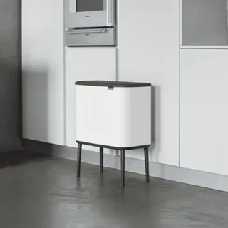 Größe:11 + 23 Liter | Farbe:Weiß (Weiß)Produktbeschreibung.Der Bo touch Mülleimer ist mehr als nur ein Abfalleimer. Er ist ein Möbelstück, das zur Einrichtung Ihrer Küche oder jedes anderen Raumes in Ihrem Zuhause passt. Mit 2 Inneneimern von 11 und 23 Litern, ideal für die Mülltrennung. Inhalt der Box1 x Bo Touch Bin Gestell 2 x Herausnehmbarer Inneneimer 4 x Montagefüße Muster Müllbeutel nach Maß Begrüßen Sieden Brabantia Bo Touch Bin:Wenn Sie nach einer schönen Lösung für Ihren Hausmüll gesucht haben, lernen Sie den Bo Touch Bin kennen. Eine Art, Abfall zu betrachten.Brabantia Bo Touch Bin, mit zwei Inneneimern, 11 + 23 Liter - Weiß:Dieser Bo Touch Bin kombiniert ein schönes Design mit allen Eigenschaften, die die Mülltrennung zu Hause erleichtern. Er ist mit zwei herausnehmbaren Inneneimern für zwei verschiedene Abfallarten ausgestattet. Er passt perfekt an die Wand (platzsparend) und ist dank der verstellbaren, rutschfesten Füße sehr stabil. Dank seines weichen Verschlusses lässt er sich mit einer leichten Berührung leicht handhaben.Organisieren Sie Ihren Abfall auf Ihre Weise:Ihr Bo Touch Bin wird mit zwei herausnehmbaren Inneneimern geliefert - optimal für die Mülltrennung zu Hause.Mit Liebe gemacht:Brabantia liebt unseren Planeten so sehr wie Sie. Das bedeutet, dass diese Brabantia-Produkte strenge Anforderungen an die (Wieder-)Verwendung von Materialien, erneuerbare Energien, Wassermanagement und soziale Gerechtigkeit erfüllen. Sie sind auf der Suche nach einer schönen Lösung für Ihre Abfalltrennung? Dieser Bo Touch Bin kombiniert wunderschönes Design mit allen nötigen Funktionen für die einfache Abfalltrennung in Ihrem Zuhause. Er verfügt über zwei herausnehmbare Kunststoffeinsätze für zwei unterschiedliche Abfallarten. Er passt perfekt an die Wand (platzsparend) und ist dank seiner verstellbaren und rutschfesten Beine besonders stabil. Einzigartiger Soft-Touch Verschluss - einfache und leichte Handhabung mit nur einer Berührung.2 Inneneimer (11 Liter + 23 Liter)Ein Touch Bin, der mit Liebe für Ihre Zuhause und mit Sorgfalt für unseren Planeten designt wurde.Soft-Touch Verschluss - öffnet leise mit der sanftesten Berührung.Platzsparend - passt eng an die Wand oder bequem in eine Ecke.Einfache Abfallentsorgung ohne etwas zu verschütten - große Öffnung.Perfekte Höhe - schont Ihren Rücken und erleichtert die Fußbodenreinigung.Ideal für länger dauernde Hausarbeiten - Deckel bleibt bei Bedarf geöffnet.Problemloser Aufbau - ansteckbare Beine.Verstellbare Beine mit rutschfester Unterseite - schützt den Fußboden und sorgt für einen stabilen Stand.Einfache Reinigung - herausnehmbarer Kunststoffeinsatz. Brabantia Bo Touch Bin MülleimerEigenschaften:Eleganter rechteckiger Mülleimer mit zwei FächernStabile Konstruktion mit angenehmer HöheSimples öffnen des Mülleimers durch HandberührungEimer lassen sich ganz einfach für die Reinigung entnehmenAnzahl Fächer: 2Fassungsvermögen: 34 l (11 + 23 l)Abmessungen (B x H x T): 54 x 68 x 31,2 cmFarbe: weißTechnische DatenTyp - TypMülleimerKatalog - ProduktartMülleimerAusstattung - Fassungsvermögen (Liter)34Ausstattung - Anzahl der Fächer2.0Ausstattung - FormRechteckigAllgemein - Höhe (cm)68,0Allgemein - Breite (cm)54,0Allgemein - Gewicht (kg)5,7Ausstattung - BedienungHandbedienungAusstattung - Wandmontage möglichNeinAllgemein - FarbeweißAllgemein - Tiefe (cm)31,2 Suchen Sie nach einer schönen Lösung für die Mülltrennung? Dieser 23 + 11 Liter Brabantia Bo Touch Bin sieht nicht nur wie ein Möbelstück aus, sondern bietet auch alles, was Sie für eine einfache Mülltrennung benötigen. Er verfügt über zwei herausnehmbare Inneneimer für zwei Arten von Abfall, passt perfekt an eine Wand und ist dank seiner verstellbaren, rutschfesten Beine sehr stabil. Die Soft-Touch-Öffnung ermöglicht eine einfache und leichte Bedienung durch eine Berührung Ihrer Hand. Das ist stilvolle Mülltrennung! Brabantia Mülleimer Bo Touch Bin weis, 11 + 23 L Fassungsvermögen:34 lFormfaktor:RechteckigGehäusematerial:Kunststof