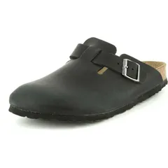 Die edlen Birkenstock Boston Flip-Flops stehen für hohe Qualität und Stil.Elegante Flip-Flops Die Birkenstock Boston sind eine wahre Schuhikone und vereinen außergewöhnliche Qualität, Komfort und zeitloses Design. Diese Lederclogs von Birkenstock sind die perfekte Wahl für Damen und Herren. Dank ihrer Größenauswahl eignen sie sich sowohl für Damen als auch für Herren. Sie eignen sich aber auch hervorragend als Alltagsschuh für jeden Anlass. Gefertigt aus hochwertigem, geöltem Nubukleder, bestechen sie durch ihr klassisches Design, das sowohl zu Sommeroutfits als auch zum ganzjährigen Tragen zu Hause passt.Birkenstock Flip-Flops zeichnen sich durch ihren hohen Tragekomfort aus. Das anatomisch geformte Kork-Latex-Fußbett und das Wildlederfutter bieten hervorragenden Halt. Die Flip-Flops verfügen über einen Riemen mit individuell verstellbarer Metallschnalle, sodass Sie sie an Ihre individuellen Bedürfnisse anpassen können. Diese Schuhe vereinen Langlebigkeit, hochwertige Verarbeitung und unvergleichlichen Komfort und werden so zu einem unverzichtbaren Basic für alle, die Wert auf außergewöhnliche Qualität legen.Vorteile und Hauptmerkmale der Birkenstock Boston Clogs:Schmale PantolettenUni-Lederpantoletten für den AlltagSchuhe für Damen und Herren, je nach GrößeLeicht, extrem bequem und langlebigHochwertige VerarbeitungKlassisches DesignPerfekt für Zuhause und den SommerObermaterial aus hochwertigem, geöltem NubuklederEVA-LaufsohleAnatomisch geformte Kork-Latex-InnensohleWildlederpolsterungRiemen mit individuell verstellbarer Metallschnalle PRODUKTBESCHREIBUNGDer Clog Boston, ein Klassiker unter den BIRKENSTOCK Modellen, zeigt sich hier in einer besonders edlen Variante mit einem Schaft aus hochwertigem geöltem Nubukleder. Der warme Braunton betont die natürliche Optik. Mithilfe des in den oberen Schaftrand integrierten Riemens und einer stabilen Metallschnalle im modischen Antik-Look lässt sich der Clog jedem Fuß individuell anpassen. Der geschlossene Clog bietet guten Halt trotz großer Bewegungsfreiheit im Zehenbereich und lässt empfindlichen Füßen genügend Raum zur Entfaltung. Das anatomisch geformte Original BIRKENSTOCK Kork-Latex-Fußbett mit geschmeidiger Velourslederdecksohle sorgt für ein angenehmes Laufgefühl. Die besonders leichte EVA-Sohle ist äußerst flexibel und robust. Sie unterstützt die körper- und fußgerechte Abrollbewegung. Innensohle: Die hautfreundliche, flexible Leder-Decksohle schmiegt sich sanft an den Fuß und passt sich an dessen Kontur an. Die offenporige und dadurch besonders atmungsaktive Oberfläche ermöglicht auch bei starker körperlicher Aktivität ein angenehmes Fußklima.Fußbettmaterial:Kork ist ein nachwachsender Rohstoff, der aus der Rindenschicht der Korkeiche gewonnen wird. Das Naturprodukt ist wärmeisolierend und verfügt über sehr gute Dämpfungseigenschaften. Laufsohle: EVA (Ethylenvinylacetat) ist ein hochwertiger, besonders leichter, elastischer Kunststoff mit äußerst guten Dämpfungseigenschaften. Dadurch werden kleinere Bodenunebenheiten ausgeglichen und die Schritte in der Gehbewegung sanft abgefedert. Der BIRKENSTOCK Boston ist ein echter Klassiker, der sich problemlos das ganze Jahr über tragen lässt. Mit seinem raffinierten, individuell verstellbaren Design genießt der Boston längst Legendenstatus. Das Obermaterial besteht aus besonders dickem, geöltem Nubukleder, das offenkantig verarbeitet wurde.Anatomisch geformtes Kork-Latex-FußbettObermaterial: geöltes NubuklederDecksohle: VelourslederSohle: EVADetails: ein Riemen mit einer individuell verstellbaren Dornschnalle aus MetallWeite: schmal Anatomisch geformtes Kork-Latex-FußbettObermaterial: geöltes NubuklederDecksohle: VelourslederSohle: EVADetails: ein Riemen mit einer individuell verstellbaren Dornschnalle aus MetallWeite: schmal Das BIRKENSTOCK® Klassiker-Modell Boston verfügt über einen Riemen am Spann. Mithilfe des integrierten Riemens und einer stabilen Metallschnalle lässt sich der Clog jedem Fuß individuell anpassen. Die Metallsch