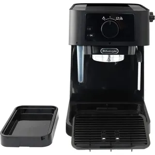 Kurzbeschreibung: DeLonghi Espresso Siebträgermaschine für 1 bis 2 Tassen mit manuellem Milchaufschäumer. Genießen Sie köstlichen Espresso auf klassische Art zubereitet, mit herrlicher Crema. Die Espressomaschine wird mit zwei Sieben (1 Tasse und 2 Tassen) zur Befüllung von Kaffeepulver geliefert. Mit 15 Bar Pumpendruck drückt die Kaffeemaschine das heiße Wasser durch das fest gepresste Kaffeemehl und sorgt für ein vollaromatisches Geschmackserlebnis mit perfekter Crema. Zusätzlich bietet die seitliche Edelstahldüse eine Heißwasser- und Dampffunktion zum manuellen Aufschäumen von bis zu 100 ml Milch für besondere Kaffeespezialitäten wie Cappuccino oder Espresso Macchiato. Produktdetails: - DeLonghi Modell: STILOSA - Für 1 oder 2 Tassen - Schwarzes Design (Hochglanz und matt kombinert) - Kessel, Siebträger, Siebe und Ausgabehebel aus Edelstahl - Tassenabstellfläche auf der Oberseite - Ablagefach für Siebträger unter Deckel - Herausnehmbare Abtropfschale - Einstellbare Tropfschale zum abstellen von 11 cm hohe Tassen/Gläser - Herausnehmbarer Wasserbehälter mit 1 Liter Fassungsvermögen - Ein-/Ausschalter - Kontrollampe - Bedienung durch Drehregler - Laufender Kaffeeausschank manuell durch Drehknopf abschaltbar (nicht automatisch) - Automatische Abschaltfunktion - Kompakte Standfläche - Inkl. Dosier-Kaffeelöffel mit Pressfläche für Siebträger Hinweis: Für die Zubereitung eines Espressos mit der richtigen Temperatur sollte die Kaffeemaschine ca. 30 Sekunden vorgeheizt werden. Technische Daten: - Espressomaschine: B x 21 x T 26 x H 29,5 cm - Kabellänge: 95,5 cm - Milchschaumdüse: Ø 0,6 cm - Siebträger : Ø 6,6 cm - Leistung: 1100 Watt - Spannung: 220-240 V - 50/60 Hz - Druck: 15 bar Modellnummer: EC 230.BK Modell Bezeichnung: STILOSA Fassung: Wassertank: 1 ltr. Zielgruppe: Küchengeräte Marke: DeLonghi Hersteller: DeLonghi Breite: 21 cm Tiefe: 26 cm Höhe: 29,5 cm Grösse: 21 x 26 x 29,5 cm Gewicht: 3,5 kg Material: Kunststoff, Edelstahl Farbe: Schwarz Lieferumfang: 1 x DeLonghi Espressomaschine STILOSA EC 230.BK schwarz, mit Milchaufschäumer. DeLonghi Stilosa EC230.BKEigenschaften:Wählen Sie Ihre Lieblings-Geschmacksrichtung oder Ihr Lieblings-Pad und bereiten Sie einen ergiebigen, milden Espresso mit einer perfekten Crema zu.Bereiten Sie eine breite Palette an Milchspezialitäten zu dank des regulierbaren Cappuccino-System.Herausnehmbare doppelte Abtropfschale für unterschiedliche Tassengrößen bis zu 110 mm hoch.Kompaktes und modernes Design.Gewicht (kg): 4,3Spannung / Frequenz (VHz): 220-240 50/60Leistung (W): 1100Farbe: schwarzAutomatische Abschaltung: jaMilchsystem: ManuellMilchkanne: jaHeizsystem: Edelstahl-BoilerAbmessungen (L x B x H mm): 205 x 343 x 285Fassungsvermögen Wassertank (l): 1Maximale Tassenhöhe (cm): 110Pumpendruck (bar): 15Siebträgereinsatz für 1 & 2 Tassen: jaTassenabstellfläche: jaHerausnehmbare Abtropfschale: jaHerausnehmbarer Wassertank: jaGehäusematerial: KunststoffAnzahl der Filter: 2 Technische Daten Kaffeemaschinentyp: Siebträgermaschine Milchaufschäumer: Milchaufschäumdüse Wasserfilter: Ja Wassertank (l): 1,0 Tassen pro Brühvorgang: 1 / 2 Display: Nein Nennaufnahme (Watt): 1100 Pumpendrucksystem (bar): 15 Farbe: schwarz Breite (mm): 343 Höhe (mm): 285 Tiefe (mm): 205 Gewicht (kg): 4,3 Stilosa EC230.BK traditionelle Pumpkaffeemaschine. Wählen Sie Ihre Lieblingsmischung und bereiten Sie ganz einfach Ihren reichhaltigen, weichen Espresso mit perfekter Crema zu. Dank des Milchaufschäumers aus Edelstahl können Sie eine Vielzahl von Milchgetränken zubereiten.MerkmaleElegantes Finish mit matten und glänzenden Details, die die dynamische Form der Kaffeemaschine unterstreichen.Kessel aus rostfreiem Stahl.Pumpendruck 15 bar.Filterhalter für gemahlenen Kaffee (1 oder 2 Tassen). Speziell gefertigter Filterhalter.Die Kaffeemaschine ist immer einsatzbereit.Traditionelles Cappuccino-System für köstliche Cappuccinos.Mit einer Wahltaste: Wählen Sie zwischen Ein/Aus, Espresso und Cappuccino. Außerdem verfügt sie über Kontr
