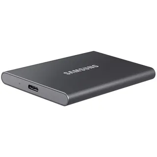 SAMSUNG Tragbare SSD T7 2 TB extern USB 3.2 Gen 2 Titangrau SAMSUNG Tragbare SSD T7 2 TB extern USB 3.2 Gen 2 Titangrau Hersteller SAMSUNG Hersteller-Teile-Nr MU-PC2T0T/WW Beschreibung Die tragbare SSD T7 ist leicht und im Taschenformat und bietet sowohl hohe Geschwindigkeit als auch Datenschutz für eine einfache Möglichkeit, große Dateien zu speichern und zu übertragen. Genießen Sie mit dem T7 jeden Tag Höchstleistung bei Ihrer Arbeit und beim Spielen. ProduktmerkmaleÜbertragen Sie im Handumdrehen Übertragen Sie große Dateien in Sekundenschnelle mit der rasanten USB 3.2 Gen 2-Geschwindigkeit des T7. Die integrierte PCIe-NVMe-Technologie ermöglicht sequentielle Lese-/Schreibgeschwindigkeiten von bis zu 1050 bzw. 1000 MB/s, wodurch der T7 fast doppelt so schnell ist wie das Vorgängermodell T5.Stark und sicher gebaut SSD steht für Solid State Drive, was bedeutet, dass es keine beweglichen Teile enthält. Die Hardware kann mit einem 256-Bit-AES-verschlüsselten Passwort geschützt werden und ist in einem robusten Metallgehäuse untergebracht, das die Daten bei einem Sturz aus bis zu 2 Metern Höhe intakt hält.Eine perfekte thermische Lösung Verwenden Sie T7, ohne sich Gedanken über eine Überhitzung machen zu müssen. Die fortschrittliche thermische Lösung der T7 nutzt ePCM und Dynamic Thermal Guard-Technologie, um Hitze zu widerstehen und zu kontrollieren, sodass die kompakte SSD auch bei hohen Geschwindigkeiten auf einer optimalen Temperatur bleibt.Eleganter und kompakter Stil Das leichte, handliche und schlanke Gehäuse gehört zur Standardausrüstung des T7. Die solide Aluminium-Unibody-Konstruktion ist etwa so groß wie eine Kreditkarte und wiegt 58 Gramm. Sie liegt bequem in der Hand.Kompatibilität mit mehreren Geräten Greifen Sie jederzeit und überall auf Ihre Dateien zu. T7 ist mit PC, Mac, Android-Geräten, Spielekonsolen und mehr kompatibel. Für zusätzlichen Komfort sind USB-Typ-C-zu-C- und Typ-C-zu-A-Kabel im Lieferumfang enthalten.Verwaltungssoftware Im Lieferumfang des T7 ist eine aktualisierte PC- und Mac-Software enthalten, mit der Sie ein Passwort einrichten und die neuesten Firmware-Updates erhalten können. Sie können die mobile App auch für Android-Smartphones und -Tablets herunterladen. Gesamt Gerätetyp Solid-State-Laufwerk – extern (tragbar) Kapazität 2 TB Hardware-Verschlüsselung Ja Verschlüsselungsalgorithmus 256-Bit-AES Schnittstelle USB 3.2 Gen 2 Funktionen Stoßfestigkeit, Passwortauthentifizierung, Dynamic Thermal Guard-Schutz, NVM Express (NVMe), 256-Bit-AES Breite 85 mm Tiefe 8 mm Höhe 57 mm Gewicht 58 g Service Schnittstellenübertragungsrate 10,0 Gbit/s (USB 3.2 Gen2) Maximale Datenübertragungsrate 1050 MB/s Interne Datenrate 1050 MBit/s (Lesen) / 1000 MBit/s (Schreiben) Erweiterung und Konnektivität Schnittstellen 1 x USB 3.2 Gen 2 – 24-poliger USB-C Stromversorgung Stromquelle USB-Bus Software- und Systemanforderungen Betriebssystem erforderlich Microsoft Windows 7 oder höher, Apple MacOS X 10.10.x oder höher, Android 5.1 (Lollipop) oder höher Andere Kabel im Lieferumfang enthalten 1 x USB-C-Kabel 1 x USB-C-auf-USB-A-Kabel Angemessene Standards Körperfarbe Titangrau Service und Support Technische Daten von Drittanbietern. Wir übernehmen keine Verantwortung für Fehler in diesen Daten. Portable SSD T7 - 2 TB - GrauEigenschaften:Externe Speichererweiterung für Spielekonsolen, PCs, Macs, Android-Geräte, Smart TVsPasswortschutz auf Basis von AES 256-Bit-HardwareverschlüsselungKompaktes und robustes Aluminium-GehäuseKapazität: 2 TBKonnektivität: USB 3.2 Gen. 2 (10Gbps)Abmessungen (B x H x T): 85 x 57 x 8,0 mmGewicht: ca. 58 gSequenzielle Lesegeschwindigkeit: Bis zu 1.050 MB/sSequenzielle Schreibgeschwindigkeit: Bis zu 1.000 MB/s (Die Leistung kann je nach Host-Konfiguration variieren)Verschlüsselung: AES 256-Bit Hardware-VerschlüsselungSicherheit: Samsumg Portable SSD Software 1.0 (Optionaler Passwortschutz)Technische DatenAusstattung - SpeicherartSSDAusstattung - Sequenzielle Schreibgeschwindigkeit (MB/s)1000.0Allgem