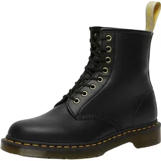 Dr. Martens 1460 Vegan BlackFarbe: Schwarz (Black)Obermaterial: Synthetik Der 1460 ist der original Dr. Martens Stiefel. Und daran erkennt man seine DNA: 8 Ösen, klassisches Dr. Martens Smooth Leder, geriffelte Seiten, eine Fersenschlaufe, gelbe Nähte und eine bequeme Dr. Martens Air Cushion Sohle. Für Veganer geeignet. Ein aus synthetischen Materialien hergestelltes Kunstleder, das weich und geschmeidig mit einer feinen Hell-Dunkel-Schattierung ist.Der Uni-Stiefel ist für die Ewigkeit gemacht – unter Verwendung der besten Konstruktionsmethode, einer hitzeversiegelten Goodyear-Rahmennaht mit Z-Stich, durch welche Oberschuh und Sohle bombenfest miteinander verbunden sind. Der Stiefel sitzt auf unserer legendären, öl- und fettresistenten AirWairTM Sohle, die über eine gute Abrieb- und Rutschfestigkeit verfügt, und ist aus Smooth gefertigt, einem leicht texturierten, äußerst strapazierfähigen Leder mit weichem Glanz. Im Winter 1945 bricht sich Dr. Maertens, ein Arzt aus Seeshaupt am Starnberger See, beim Skifahren ein Bein. Um den Heilungsprozess durch eine dämpfende Schuhsohle zu unterstützen, wird von ihm und seinem Team der 'Dr. Maertens - Schuh' konzipiert. So verließ am 01. April 1960 das erste Paar Dr. Martens das Band. Diesem Modell 1460, getauft nach dem historischen Datum 01.04.60, verdankt Dr. Martens seinen Weltruhm. Seit nunmehr 50 Jahren gilt Dr. Martens als der Kult-Schuh schlechthin. Aus der Sub-Kultur der Punkszene herausgetreten, sind Dr. Martens heute das 'Must-Have' der Fashionistas Geschlecht: DamenModelltyp: StiefelettenObermaterial: KunstlederFutter: synthetisches Material, textiles MaterialSohle: GummiAbsatzhöhe in cm: 4Plateauhöhe in cm: 3Schafthöhe der Größe 37 cm: 9Details: Metallösen, runde Spitze Hersteller: Dr. Martens Zielgruppen: Uni Altersgruppe: Erwachsene Typ: Stiefeletten Farbe: Schwarz Herstellernummer: 14045001Materialzusammensetzung: Obermaterial: Polyesterfaser 100% Innenmaterial: Polyesterfaser 100% Laufsohle: Polyvinyl 100% 1460 Black Felix Rub Off-Boots - veganer Boot von Dr. MartensGelbe NähteGeriffelte Sohleweiße SchlaufeDie Sohle wird nicht nur vernäht, sie wird mit dem Schuh verschweißt.Der Boot ist bequem, mega stylisch und unfassbar langlebig. Das Material ist weich aber dennoch sehr robust.Warum Dr. Martens? Dr. Klaus Martens entwickelte 1945 eine neuartige, luftgepolsterte Schuhsohle. Bis dato bestanden Schuhsohlen aus hartem Leder, er schuf somit einen völlig neuen Ansatz. Bis heute gilt die Qualität von Dr. Martens als unübertroffen. Die Sohlen sind absolut langlebig und werden mit dem Schuh bei 700 °C wortwörtlich verschmolzen. Wenn Du Schuhe suchst, die jahrelang halten sollen, dann bist Du mit den Boots von Dr. Martens genau an der richtigen Adresse! Original Dr. Martens 8-Loch Boots Vegan mit gelber Naht. Der Stiefel-Klassiker ohne Stahlkappe. Die legendäre AirWair" Luftpolster-Sohle. Eine vegane Version der 8-Loch-Stiefel und dem 3-Loch-Schuh. Die synthetischen Materialien eignen sich für eine vegane Lebensweise, die Qualität wurde davon jedoch nicht beeinträchtigt. Diese Kollektion ist bis ins letzte Detail eine Nachbildung unserer Standardmodelle und zeichnet sich durch eine natürlicher wirkende Zuglasche aus. 8-Loch-1460-Stiefel Für Veganer geeignetes Synthetikmaterial Goodyear-welted, d. h., Obermaterial und Sohle sind verschweißt und zusammengenäht Zugschlaufe Dr. Martens Air-Cushion-Sohle" Eines der beliebtesten Modelle der Marke Dr. Martens, produziert seit 1960. - knöchelhoch, mit 8 Löchern gebunden. Der Innenraum ist mit Stoff ausgekleidet. Sohle mit patentierter Air Wair-Technologie (Luftsohle). Modell ohne Blech in der Spitze.Das charakteristische hervorstehende Etikett und die Nähte auf der durchscheinenden Sohle – alles, was mit der Marke Dr. verbunden ist. Doc Martens.Das hohe Obermaterial besteht aus hochwertigsten Kunstledermaterialien. allerdings 100 % vegan. Felix Rub Off ist ein hochglänzendes Synthetikmaterial mit premium Tragegefühl und einem dezenten zw