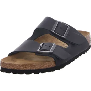 Klassische Sandalen von Birkenstock Arizona: Komfort und Stil für Sommertage Ausgezeichnete Damen-/Herren-Sandalen von Birkenstock Arizona. Dies ist ein Klassiker des Genres, der für Benutzer unabhängig vom Geschlecht gedacht ist. Die Marke Birkenstock ist auf Flip-Flops für Damen und Herren spezialisiert. Diese minimalistischen Flip-Flops stehen für zeitlosen Stil und gelten seit langem als ikonische Schuhe mit höchstem Tragekomfort. Klassische zwei Riemen mit individuell verstellbarer Metallschnalle sind das Markenzeichen des Modells Arizona. Flip-Flops von Birkenstock begeistern durch ihr elegantes Aussehen und sind gleichzeitig sehr solide und bequem. Sie eignen sich perfekt für Sommertage, da sie als Alltagsschuhe verwendet werden können: Sie können sie im Geschäft oder bei kurzen Spaziergängen tragen.Hochwertiges Obermaterial in Form von geöltem Nubukleder besticht durch seinen Detailreichtum, hält die Schuhe in der richtigen Position und sorgt für Komfort am Fuß. Die Arizona Flip-Flops von Birkenstock verfügen außerdem über ein weiches, atmungsaktives Futter, das für außergewöhnlichen Komfort sorgt. Die leichte EVA-Außensohle gleicht kleine Unebenheiten auf der Straße aus und sorgt für eine hervorragende Dämpfung.Vorteile und Hauptmerkmale der Birkenstock Arizona Flip-Flops: für einen schmalen Fuß (schmal) klassisches Modell der Marke tolle Sommerschuhe für den Alltag bequem und langlebig minimalistisch und stilvoll anatomische Kork-Latex-Einlegesohle Obermaterial aus geöltem Nubukleder Futter aus Wildleder Außensohle aus EVA-Schaum zwei Streifen einfache Anpassung Birkenstock Herren-Pantolette mit Tieffußbett Arizona in der Farbe Schwarz.Der BIRKENSTOCK Arizona ist ein echter Sandalen-Klassiker. Hier zeigt sich die individuell verstellbare Uni-Sandale mit den zwei Riemen in einer lässigen Variante aus geöltem Nubukleder. Das weiche Leder wurde offenkantig verarbeitet. Das unterstreicht die handwerkliche, natürliche Optik dieser trendigen Sandale.Anatomisch geformtes Kork-Latex-FußbettObermaterial: geöltes NubuklederDecksohle: VelourslederSohle: EVADetails: verstellbare Dornschnallen aus MetallObermaterial: Fettleder Fettleder ist an der unbehandelten Oberfläche zu erkennen. BIRKENSTOCK verzichtet bewusst darauf, Narbungen und andere charakteristische Merkmale zu bearbeiten. BIRKENSTOCK verwendet als Obermaterial dickes Leder mit einer Stärke von 2,8 bis 3,2 Millimetern.Innensohle: Leder-Decksohle Die hautfreundliche, flexible Leder-Decksohle schmiegt sich sanft an den Fuß und passt sich an dessen Kontur an. Die offenporige und dadurch besonders atmungsaktive Oberfläche ermöglicht auch bei starker körperlicher Aktivität ein angenehmes Fußklima.Fußbettmaterial: Kork Kork ist ein nachwachsender Rohstoff, der aus der Rindenschicht der Korkeiche gewonnen wird. Das Naturprodukt ist wärmeisolierend und verfügt über sehr gute Dämpfungseigenschaften.Laufsohle: EVA EVA (Ethylenvinylacetat) ist ein hochwertiger, besonders leichter, elastischer Kunststoff mit äußerst guten Dämpfungseigenschaften. Dadurch werden kleinere Bodenunebenheiten ausgeglichen und die Schritte in der Gehbewegung sanft abgefedert. Birkenstock Pantolette Arizona FL schmale Weite schwarzMit der Pantolette erwerben Sie einen hochwertigen Artikel, der Ihnen viel Freude bereiten wird.MaterialDie Birkenstock Pantolette setzt sich aus folgenden Materialien zusammen: * Obermaterial: Leder * Innenfutter: ohne * Schaft: ohne * Laufsohle: Leder * Innensohle: LederAnwendungsbereicheDie Pantolette eignet sich nicht nur ideal für den Beruf sondern auch für diverse Tätigkeiten im privaten Umfeld.Besondere EigenschaftenDurch die besondere Kombination der verschiedenen Materialien ist diese Pantolette komfortabel und überzeugt zudem durch hohe Robustheit.AltersgruppeDie Hauptzielgruppe der Pantolette sind Erwachsene. Das BIRKENSTOCK® Modell Arizona ist seit Jahren eines der beliebtesten Sandalenmodelle. Die individuell verstellbare Sandale mit den zwei Riemen hat sich längst