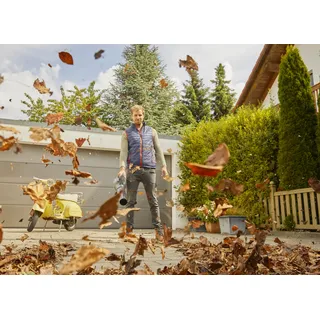 Der Akku-Laubbläser PowerJet 18V P4A von GARDENA ist die perfekte Ergänzung Deiner Gartengerätesammlung. Da er vielseitig einsetzbar ist, holst Du den Kameraden immer dann heraus, wenn Du vor lauter Laub, Schmutz oder Grasschnitt den Gartenweg nicht mehr findest. Produktmerkmale des Akku-Laubbläsers PowerJet 18V P4A mit Akku und Ladegerät von GARDENA Darum solltest Du zugreifen: Mit dem Laubbläser PowerJet 18V P4A bekommst Du ein leichtes, kompaktes Gerät, das über Lithium-Ionen-Akkus mit Energie versorgt wird. Der Akku aus der GARDENA-Akku-Familie „Power for All“ hat eine Kapazität von 2,5 Ah. Power-for-All-Akkus setzt Du problemlos mit anderen Geräten der Akkuserie ein. Außerdem kannst Du die aufladbare Batterie auch markenübergreifend verwenden. Flexibilität hat hier einen großen Stellenwert. Lade zusätzliche Akkus auf, während Du mit dem Laubbläser um Dein Haus flitzt und für Sauberkeit und Ordnung sorgst. Das Laden eines Akkus dauert rund 154 min. Wenn der Akku im Bläser anfängt zu schwächeln, wechselst Du ihn einfach gegen den aufgeladenen aus. Du hältst den Laubbläser an seinem ergonomischen Griff sicher in der Hand. Da das Gerät gerade mal 2,3 kg auf die Waage bringt, geht die Nutzung bequem vonstatten. GARDENA hat den PowerJet 18V P4A clever konstruiert. Der Ventilator ist in Arbeitsrichtung angeordnet. Eine eingearbeitete Düse sorgt für die nötige Flexibilität. Luft strömt ungehindert durch das Gerät. Am Ende bedeutet dies eine stärkere Blasleistung bei weniger Strömungsverlust. Der PowerJet 18V P4A erreicht eine maximale Luftgeschwindigkeit von 100 km/h. Willst Du mit weniger Schmackes blasen, veränderst Du die Luftgeschwindigkeit. Individuelle Einstellungen sind möglich, sodass Du die Blasgeschwindigkeit Deinem Vorhaben anpassen kannst. Da hat der Grasschnitt und selbst nasses Laub nichts mehr zu lachen. Eine Fangvorrichtung ist beim Akku-Laubbläser PowerJet 18V P4A nicht vorgesehen. Der Akku-Laubbläser PowerJet 18V P4A bläst Schmutz, Rasenschnitt, Unrat und Laub aus Deinem Garten, ohne mit der Wimper zu zucken. Du kannst die Luftgeschwindigkeit individuell bis zu maximal 100 km/h einstellen. Ergonomische Handlichkeit und das leichte Eigengewicht verleiten zu ausgiebigen Reinigungstouren rund um Dein eigenes Reich. Festgenagelt: Mit dem PowerJet 18V P4A holst Du Dir einen potenten Gras- und Laubbläser ins Haus, der aufgrund seiner ausgeklügelten Luftstromtechnik deutlich mehr Leistung bringt. n.a. Set Gebläse GARDENA PowerJet- Der leistungsstarke Akku-Bläser erlaubt Dir ein ebenso flexibles wie effektives und schnelles Reinigen. Dieses Kraftpaket kannst Du ideal im Garten und um das Haus herum einsetzen- Das Gerät wird als Ready-To-Use Set mit Ladegerät und einem 2,5-Ah-18V-Akku der POWER FOR ALL ALLIANCE geliefert. Der leistungsstarke Akku liefert eine maximale Laufzeit von 13 bis 23 Minuten, abhängig von der eingestellten Leistung- Aufgrund der innovativen Konstruktionsweise des Bläsers, geht das Reinigen des Gartens noch schneller und effizienter. Dabei sorgt ein hohes Luftvolumen von maximal 7.9 m3 pro Minute für eine großartige Blasleistung und ermöglicht es Dir, eine Fläche von bis zu 400 m2 zu reinigen- Das niedrige Gewicht, die optimale Balance sowie der ergonomische Griff sorgen nicht nur für einen sicheren, angenehmen Halt, sondern erlauben auch längeres Arbeiten ohne Ermüdung der Arme und Hände- Mit dem praktischen Leistungsregler ist es möglich, die Geschwindigkeit des Bläsers je nach Einsatzort und -zweck individuell und präzise anzupassen- Die gut sichtbare LED-Anzeige direkt am Gerät informiert über den aktuellen Ladestand des Akkus. Du weißt also immer, wie lange Du noch arbeiten kannst – und wann es Zeit wird für eine wohlverdiente Pause Das GARDENA PowerJet 18V P4A Akku-Gebläse ist ein leichtes und kompaktes Gerät für den Einsatz rund um Haus und Garten. Das leistungsstarke Gebläse entfernt mühelos Schmutz, Laub und Grasschnitt von Rasen und befestigten Flächen, ohne sich zu bücken. Die ergonomisc