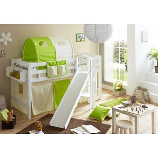 TICAA Hochbett Tino mit Rutsche 90 x 200 cm Buche massiv weiß beige-grün