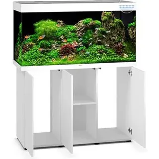 Hier können Sie sich beim Gestalten Ihres Unterwasserparadieses so richtig austoben Aquarium Kombination, inkl. LED-Beleuchtung, Filtersystem und Heizer, Fassungsvermögen 350 l, für Süßwasser geeignet Mit der JUWEL® AQUARIUM Kombination Rio 350 LED holen Sie sich ein Aquarium mit ausgereifter Technik und passendem Schrank zu sich Nachhause, in dem sich große Fische als auch anspruchsvolle Meeresbewohner wohlfühlen. Die klassisch, rechteckige Form der JUWEL® AQUARIUM Kombination Rio 350 LED im eleganten Design passt sich jedem Wohnstil an und dank des Fassungsvermögens von 350 Litern können Sie sich somit eine einzigartige Unterwasserlandschaft zaubern. Damit Sie sich um nichts mehr kümmern müssen, sind neben dem Schrank auch Filter, Heizer und LED-Beleuchtung im Lieferumfang gleich mit dabei. Die JUWEL® AQUARIUM Kombination Rio 350 LED ist mit einer MultiLux LED 120 Einsatzleuchte für optimales Lichtspektrum ausgestattet, mit der Sie eine Energieersparnis von 50 % haben. 350 l Fassungsvermögen – dank MultiLux LED ins rechte Licht gerückt Ein Aquarium ist immer ein besonderes Highlight. Die JUWEL® AQUARIUM Kombination Rio 350 LED ist ein ganz besonders schickes Stück. Durch viele kleine Details überzeugt das Aquarium Komplettset jeden Besitzer und macht das Aquarium somit einzigartig. Die klassisch, rechteckige Form der JUWEL® AQUARIUM Kombination Rio 350 LED und seine Größe machen dieses nicht nur zu einem besonderen Blickfang, sondern erlaubt kompromisslos eine Aufstellung in jeden Wohnraum. Für eine klare Linie und Einheit wird das JUWEL® AQUARIUM Rio 350 LED mit dem passenden Unterschrank optimal abgerundet. Mit einem 350 Liter Fassungsvermögen können Sie sich im Aquarium eine einzigartige Unterwasserwelt zaubern, an der Sie sich jeden Tag erfreuen werden. Für einen besonders sicheren Stand verfügt die Juwel JUWEL® AQUARIUM Rio 350 LED über einen Sicherheitsunterrahmen, wodurch Sie das Aquarium auch ohne spezielle Unterlage aufstellen können. Die einwandfreie Verarbeitung in Deutschland, hochwertiges Material sowie perfekt abgestimmte Technik garantieren ein Maximum an Qualität. Damit Sie das Aquarium gleich in Betrieb nehmen können, wird die abgestimmte, innovative Technologie wie Filtersystem, Heizer und energiesparende LED-Beleuchtung gleich mitgeliefert. Damit die Unterwasserwelt in der JUWEL® AQUARIUM Kombination Rio 350 LED perfekt ausgeleuchtet wird, ist bei der Kombination die MultiLux LED 120 Einsatzleuchte (2 x 1047 mm) mit einer auswechselbaren LED Röhren-Kombination aus je 1 LED Day und LED Nature für ein optimales Lichtspektrum enthalten. Diese wurden selbstverständlich speziell auf die Größe vom JUWEL® AQUARIUM Rio 350 LED angepasst und ermöglichen durch eine gleichmäßige Ausleuchtung ein hervorragendes Pflanzenwachstum. Die LED-Leuchten sind ultraschall-verschweißt und sind daher 100prozentig wasserdicht, ebenso erfüllen sie die hohen europäischen Sicherheitsstandards. Ebenso ist durch das MultiLux-Beleuchtungssystem ein komfortables Arbeiten im Aquarium auch bei eingeschalteter Beleuchtung möglich. Inkl. Filter, Pumpe, Heizer und passendem Unterschrank Technisch ist die JUWEL® AQUARIUM Kombination Rio 350 LED mit einem leistungsstarken Bioflow L Innenfilter ausgestattet, welcher Effektivität und Sicherheit miteinander verbindet. Der Filter ist mit fünf leistungsstarken Filtermedien und einer leisen aber kraftvollen Eccoflow 1000 Umwälzpumpe ausgestattet. Damit auch die Temperatur im Aquarium optimal ist bekommen Sie den AquaHeat Regelheizer 300 Watt gleich mit dazu. Durch Verwendung von Sicherheitsglas erfüllt der Heizer die Ansprüche in punkto Sicherheit und ist natürlich TÜV/GS zertifiziert. Damit die JUWEL® AQUARIUM Kombination Rio 350 LED auch wirklich in jeden Wohnraum passt, gibt es die schicke Kombination in verschiedenen Farben. Der Unterschrank ist mit dem Ganzglasaquarium der optimale Blickfang und bietet dank seines großzügigen Stauraums genügend Platz für Zubehör, Fischfutter oder auch Wasserpflege. Mit der JUWEL® AQUARIUM Kombination Rio 350 LED bleiben garantiert keinerlei Wünsche offen.