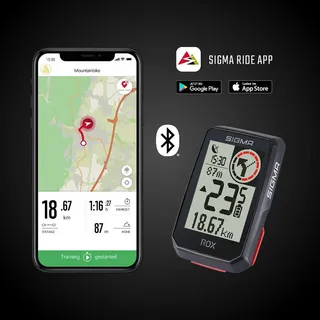 Der ROX 4.0 GPS Trainingscomputer von Sigma - gute Übersicht über Deine FahrdatenDer ROX 4.0 GPS Trainingscomputer von Sigma verfügt über GPS für Track-Navigation und hat ein transflektives 2,4-Zoll-Display, das während der Fahrt gut abzulesen ist. Dank der farblich unterlegten Darstellung erfasst Du Deine Fahrtdaten rasch. Der lässt sich ROX 4.0 auch an Dein E-Bike koppeln. Über Deine E-Bike-Funktionen verfügst Du so auf einen Blick. Die Search-&-Go-Funktion bringt Dich jederzeit auf dem schnellsten Weg an Dein Ziel und berücksichtigt dabei die von Dir gewünschte Wegbeschaffenheit. Wenn Du Smartphone-Benachrichtigungen erhalten willst, brauchst Du den ROX nur mit Deinem Handy zu verbinden. Dadurch bleibst Du auch während der Fahrt auf dem Laufenden.Spezifikationen:Einsatzbereich:RadfahrenKarten:NeinNavigation:Track-Navigation (ohne Karte)Bedienung:TastenGeschwindigkeit:Geschwindigkeits-Sensor (optional erhältlich)Herzfrequenz:Herzfrequenz-Brustsensor (optional erhältlich)Trittfrequenz:Trittfrequenz-Sensor (optional erhältlich)Kompatibilität Leistungsmessung:NeinBeschleunigungssensor:Ja (Schrittfrequenz, Vertikalbewegung)Konnektivität Sensoren:ANT+, BluetoothDatenübertragung:Bluetooth, ANT+Technische Daten:Geräteabmessung:44,9 mm x 73,6 mm x 18,4 mmAnzeigengröße:2,4"Anzeigenauflösung (B x H):23 x 59 PixelDisplay:GraustufenStromversorgung:Lithium-Ionen-AkkuBetriebsdauer/Akkuladung:25 StundenWasserdichtigkeit:Ja (IPX7)Satellitensysteme:GPS, GLONASSHöhenmesser:BarometerKompass:GPSAlarme:AnzeigeFunktionen:Smartphone-BenachrichtigungenFeatures:GPS-Trainingscomputertransflektives, großes 2,4" -Display, auch während der Fahrt gut lesbarRed Circle: farbig unterlegte Darstellung Deiner TrainingsdatenNavigationsfunktionen: Search & Go, Track-NavigationE-Bike-Funktionen: Reichweite, E-Bike-Batterie, Human Power vs. Motor Power, Unterstützungsstufe, Lichtbis zu 6 Trainingsseitenbis zu 1000 Stunden SpeicherTemperaturanzeigeUmgebungslichtsensorAuto-PauseSigma-Ride-App: Trainingsdaten übertragen, sammeln und auswerten, individuelle Display-Anzeige, Tracks von Drittanbietern importierenTechnologien:E-Bike ready Der Fahrradcomputer ist E-Bike-ready. Das bedeutet, dass Du ihn mit den meisten E-Bikes verbinden kannst. Dadurch erhältst Du Werte wie Reichweite, Akkustand und Unterstützungsstufe auf dem Display Deines Fahrradcomputers. Search & Go Die Search-&-Go-Funktion hilft Dir, schnell zu jedem beliebigen Punkt zu gelangen. Du suchst entweder in der Sigma-Ride-App die gewünschte Adresse oder wählst einen Punkt auf der Karte aus. Außerdem legst Du Deine bevorzugte Wegeart, wie Radweg, Straße oder unbefestigte Wege, fest. Daraufhin erstellt Dir die App einen Track, den Du direkt auf Deinem Sigma Gerät starten oder für einen späteren Zeitpunkt speichern kannst.Herstellernummern:schwarz:1060 SIGMA Fahrradcomputer Rox 2.0Features Allgemein • Abmessung (B x L x H) 44,9x73,6x18,4mm • Halterkompatibilität GPS MountOverclamp Butler • Gewicht 51 g • Wasserdichtigkeit IPX7 • Batterie 550mAh (Li Ion), 3.7 V • Touchscreen - • Displaygröße 2.4" • Auflösung (pixel) Hauptanzeige: 59x23 • Color display / Number of colors 2 • Displaytechnologie Transflektiv • Hintergrundbeleuchtung • übliche Batterielaufzeit 25 Stunden • Konnektivität ANT+BLE • Smart Notifications • Sensorik GeschwindigkeitHerzfrequenzTrittfrequenz • E-Bike Ready NAVIGATION • Abbiegehinweis • Zurück zum Startpunkt Pfeilnavigation SENSOREN • GPS • GLONASS • Barometrische Höhenmessung • Umgebungslichtsensor TRAINING • Vorinstallierte Sportprofile 1 • Individuell einstellbare Sportprofile 1 (weitere Sportprofile in der App speicherbar) • Individuell einstellbare Trainingsseiten bis zu 6 • Individuell einstellbare Anzahl Trainingswerte pro Seite 3 • Vorlagen für Trainingsansichten 1 • Strava Live Segmente - • Auto Pause • DATENAUSWERTUNG • SIGMA DATA CENTER • SIGMA RIDE App • Speicher bis zu 100 h Training • Datenformat .fit BASIS FUNKTIONEN • Geschwindigkeit • Durchschnittsgeschwin