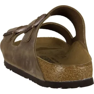 Welche Flip-Flops soll ich für den Sommer wählen? Entscheiden Sie sich für die hervorragenden Birkenstock Arizona Flip-Flops. Sie sind ein Klassiker ihrer Art und für Träger jeden Geschlechts gedacht. Die Marke Birkenstock ist sowohl auf Flip-Flops für Damen als auch auf Flip-Flops für Herren spezialisiert. Diese minimalistischen Zweiriemer-Flip-Flops stehen für zeitlosen Stil und gelten längst als Kultschuhe mit höchstem Tragekomfort. Birkenstock Flip-Flops bestechen durch ihre elegante Optik und sind gleichzeitig sehr robust und bequem. Sie eignen sich perfekt für Sommertage, da sie als Alltagsschuhe verwendet werden können: Sie können sie zum Einkaufen oder für kurze Spaziergänge tragen.Das Obermaterial der Birkenstock Flip-Flops besteht aus strapazierfähigem, weichem und angenehm anzufassendem hochwertigem Leder, das die Schuhe in der richtigen Position hält und dem Fuß Komfort bietet. Birkenstock Arizona Sandalen verfügen außerdem über ein weiches, atmungsaktives Futter, das außergewöhnlichen Komfort bietet. Die leichte EVA-Außensohle gleicht kleinere Unebenheiten der Straße aus und bietet eine hervorragende Dämpfung.Vorteile und Hauptmerkmale der Birkenstock Arizona Damen Flip-Flops:schmale Flip-Flopsklassisches Markenmodelltolle Sommerschuhe für den Alltagbequem und langlebigminimalistisch und stilvollanatomische Kork-Latex-EinlegesohleWeiches FußbettObermaterial NubuklederWildlederfutterAußensohle aus EVA-SchaumJe nach Größe kann das Modell als Damen- oder Herren-Flip-Flops verwendet werdenzwei Streifeneinfach einzustellen Der BIRKENSTOCK Arizona ist ein echter Sandalen-Klassiker. Hier zeigt sich die individuell verstellbare Uni-Sandale mit den zwei Riemen in einer lässigen Variante aus geöltem Nubukleder. Das weiche Leder wurde offenkantig verarbeitet. Das unterstreicht die handwerkliche, natürliche Optik dieser trendigen Sandale.Anatomisch geformtes Kork-Latex-FußbettObermaterial: geöltes NubuklederDecksohle: VelourslederSohle: EVAWeite: SchmalDetails: verstellbare Dornschnallen aus Metall Anatomisch geformtes Kork-Latex-FußbettObermaterial: geöltes NubuklederDecksohle: VelourslederSohle: EVAWeite: SchmalDetails: verstellbare Dornschnallen aus Metall Das BIRKENSTOCK® Modell Arizona ist seit Jahren eines der beliebtesten Sandalenmodelle. Die individuell verstellbare Sandale mit den zwei Riemen hat sich längst zu einem Kultschuh entwickelt. Sie vereint Passform und zeitloses Design. Sowohl im Beruf als auch in der Freizeit ist der vielseitige BIRKENSTOCK®-Klassiker anzutreffen. Durch die Vielfalt an Materialien und Farben ist das Modell eine Sandale für Jung und Alt. Die Birkenstock Arizona ist ein echter Klassiker. Diese Sandale mit zwei individuell verstellbaren Riemen ist eine lässige Sandale aus geöltem Nubukleder Obermaterial und anatomisch geformtem Kork/Latex Fußbett. Sie haben ein Futter aus Wildleder und eine EVA Sohle für zusätzlichen Halt den ganzen Tag über. Diese Sandalen sind sehr bequem und leicht. Leichte, bequeme und aus hochwertigen Materialien gefertigte Flip-Flops für Sommertage. Herren Tieffußbett Pantolette von Birkenstock aus einem robusten Fettnubukleder. Das exzellente Innenleben aus bestem Leder gibt Ihnen ein erholsames Gefühl an langen Tagen. Das Original BIRKENSTOCK-Fußbett ist mit Leder bezogen und unterstützt mit seinen anatomischen Ausformungen Ihre Füße optimal bei der natürlichen Schrittabwicklung. Die Weite entspricht der schmalen Birkenstock Form und ist am Besten für normal breite Füße geeignet. Der Absatz ist durchgehend flach , Über eine Schließe läßt sich der Schuh bequem an- und ausziehen. Die Schuhgröße fällt regulär aus. BIRKENSTOCK ist noch bis heute ein Familienunternehmen, das Traditionen pflegt. BIRKENSTOCK steht für erstklassige Produkte, die mit viel Liebe zum Detail und einem hohen Anteil an Handarbeit sorgfältigst hergestellt werden.Grundsatz einer jeden BIRKENSTOCK Generation ist es, die Vorgaben der Natur als Maßstab zu betrachten, um die natürlichen Funktionen des F