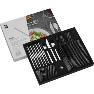 WMF Besteckset Palermo – 60-teilig / 12 Personen Entdecken Sie das WMF Palermo Besteckset: ein komplettes 60-teiliges Set für 12 Personen, hergestellt aus robustem Cromargan® Edelstahl 18/10. Dieses Set kombiniert ein zeitloses, leicht gebürstetes Design mit hervorragender Langlebigkeit und Hygiene. Die schlanken Formen und sanften Rundungen sorgen für einen komfortablen Griff und eine stilvolle Ausstrahlung auf jedem Esstisch. Perfekt für den täglichen Gebrauch und festliche Abendessen. Vorteile * 60-teiliges Set für 12 Personen, einschließlich Tischbesteck, Kuchen- und Kaffeebesteck * Cromargan® Edelstahl 18/10: kratzfest, rostbeständig und pflegeleicht * Gebürstete Oberfläche für einen subtilen, modernen Look und weniger sichtbare Fingerabdrücke * Ergonomisch geformte Griffe für einen komfortablen Griff * Spülmaschinenfest für eine einfache und hygienische Reinigung Bitte beachten * Nicht geeignet für die Verwendung in der Mikrowelle oder im Ofen * Vermeiden Sie aggressive Reinigungsmittel oder Stahlwolle, um Kratzer zu verhindern * Trocknen Sie das Besteck nach dem Spülen sofort ab, um Wasserflecken zu minimieren * Bewahren Sie das Besteck in einer trockenen Schublade auf, um Ablagerungen zu vermeiden Technische Daten * Marke: WMF * Serie: Palermo * Material: Edelstahl 18/10 (Cromargan®) * Oberfläche: Gebürstet * Farbe: Silber * Gewicht Set: 3,3 kg * Spülmaschinenfest: Ja * Mikrowellen-/ofengeeignet: Nein * Herkunft: Vietnam * 12× Tischgabel * 12× Tischmesser * 12× Esslöffel * 12× Kuchengabel * 12× Kaffeelöffel Tipps zur Verwendung und Pflege * Legt das Besteck nach dem Spülen in eine saubere Besteckschublade, um Kratzer zu vermeiden * Verwenden Sie beim Eindecken des Tisches das Besteck mit derselben Glanzrichtung für ein einheitliches Erscheinungsbild * Reinigen Sie Flecken oder Ablagerungen sofort mit einem weichen Tuch und lauwarmem Wasser Inhalt: Besteck Set 12 Person (60 Teile): je 12 Gabeln, Tafelmesser, Löffel, Kuchengabeln, Tee-/ Kaffeelöffel - Artikelnummer: 1177009990Material: Cromargan Edelstahl 18/10 poliert (glänzend). Besteckteile aus Cromargan sind beständig gegen Speisesäuren, geschmacksneutral, rostfrei und spülmaschinengeeignetDas Monoblocmesser liegt gut in der Hand und hat ein ausgewogenes Gewicht. Die Oberflächen sind präzise beabreitet. Alle Kanten sorgfältig verrundetDie soliden Monobloc Tafelmesser aus rostfreiem Klingenstahl werden aus einem Stück geschmiedet und im Ganzen gehärtet.Das Besteckset wird in einer hochwertigen Besteckkassette geliefert. Die Abbildung auf dem Geschenkkarton ist bei allen WMF Bestecken einheitlich geführt (Modell Atria poliert) Besteck Palermo: Stilvolle Harmonie Klare, unprätentiöse Konturen, sachlich-zeitgemäße Proportionen: Das Besteck Palermo von WMF begeistert mit stilvoller Harmonie auf dem Tisch und erfreut mit seiner kombinierfreudigen, schlichten Formgebung, die viel Raum für Accessoires lässt. Alle Teile des 60-teiligen Palermo Besteck-Sets für 12 Personen liegen ergonomisch perfekt in der Hand und sind aus hochwertigem, genauso strapazierfähigem wie pflegeleichtem und edlem Cromargan® gefertigt. Die Messer werden aus einem Stück rostfreien Klingenstahls geschmiedet, im Ganzen gehärtet und verfügen dazu über einen speziell entwickelten Wellenschliff, der für dauerhafte Schärfe und perfektes Schneiden sorgt. Das Palermo Besteck-Set ist selbstverständlich zur mühelosen Reinigung spülmaschinenfest und wird in einem hochwertigen Besteckkasten zur genauso sicheren wie praktischen Aufbewahrung geliefert. 60-teiliges poliertes Besteck-Setaus rostfreiem Cromargan Edelstahl 18/10mit ergonomischen Griffengeeignet für 12 Personenspülmaschinenfest und säurebeständig Das polierte 60-teilige Besteck-Set von WMF ist ergonomisch geformt, eignet sich für 12 Personen und besteht aus poliertem Cromargan Edelstahl 18/10. Die Messer werden aus einem Stück rostfreien Klingenstahls geschmiedet, im Ganzen gehärtet und verfügen dazu über einen speziell entwickelten Wellenschliff, der
