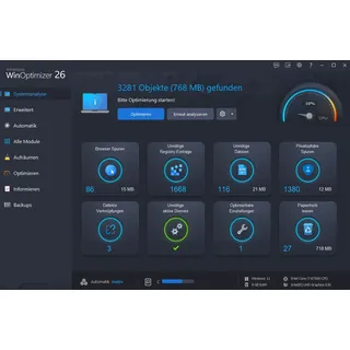 Der neue Ashampoo WinOptimizer 26 schaltet zweimal den Turbo ein! Machen Sie Ihren PC schneller und reinigen Sie ihn effektiv - mit nur wenigen Klicks! Windows ist gut - aber es könnte besser und schneller sein! Ashampoo WinOptimizer 26 erledigt das für Sie! Denn Betriebssysteme werden mit der Zeit langsam, fehleranfällig und sammeln Datenmüll an. Wichtige Einstellungsmöglichkeiten fehlen oder finden sich tief im System versteckt. Auch die Privatsphäre ist bedroht, vor allem Windows 10 und Windows 11 übertragen mehr Daten, als dem Nutzer lieb sein kann. Hier greift WinOptimizer ein - schnell, präzise und kraftvoll. Ohne Vorkenntnisse oder viel Zeitaufwand kann auch Ihr Computer wieder schnell und reibungslos funktionieren, wie frisch installiert! Geben Sie Ihrem PC ein schnelles, schlankes Windows mit gesicherter Privatsphäre! Sensible Daten finden und löschen mit Privacy Traces Cleaner Individuelle Windows-Optimierung mit Tuning Assistent Vier leistungsstarke Cleaner im One-Click Optimizer Systemanalyse mit mehr Informationen und Übersichtlichkeit Blitzschnelle Cleaner mit neuen Suchalgorithmen Info-Einblendungen durch Windows Benachrichtigungscenter Drive Cleaner mit eigenen Dateifiltern Verbessertes Browser Handling beim Internet Cleaner Cleaner mit Profil-Unterstützung für Browser Windows-Apps einlesen und deinstallieren im UnInstall Manager 2 UnInstall Manager 2 mit neuem Design, Look + Feel Process Manager mit Baumstruktur Anzeige von Diensten für SVHOST-Prozesse Modern designte Berichte erstellen und drucken SSD-Assistent mit neuem Aufbau und mehr Informationen WinOptimizer-26 für bis zu 3 Geräte Ein besseres Windows auf drei PCs auf einmal Wenn Sie Ashampoo® WinOptimizer privat nutzen, können Sie 3 Ihrer Computer mit einer Lizenz ausstatten! Kaufen Sie nur eine Lizenz und Ihre ganze Familie profitiert von einem schlanken, schnellen und sicheren Windows! Nur für die gewerbliche Nutzung: Eine Lizenz pro Gerät. Völlig neuer Cleaner mit mehr Leistung und Effizienz Der Festplattenreiniger für spürbar mehr Festplattenplatz Mit völlig neuen technischen Grundlagen und Algorithmen sind die beliebten Cleaner im Schnitt 50% schneller und effektiver! WinOptimizer hatte noch nie eine solche Steigerung! Ob Drive Cleaner, Registry Cleaner oder Internet Cleaner, die Cleaner rasen förmlich über Ihre Festplatten und fangen mehr Datenmüll ab als je zuvor. Auch ältere Systeme profitieren von der neuen Performance, butterweichen Animationen, weniger Speicherverbrauch und neuen Kontextmenüs. Und natürlich sind die Cleaner für alle unterstützten Betriebssysteme, Setups und aktuellen Browser perfekt angepasst! Eine neue Dimension der Tiefenreinigung dank WinOptimizer-26 Weniger Datenmüll, Installationsreste und Cache-Dateien auf Ihrer Festplatte Mit der erweiterten Tiefenreinigung geht die Jagd nach Datenmüll in eine neue Runde und löst ganz nebenbei Datenschutz- und Anzeigeprobleme! Löschen Sie alte Windows-Versionen, Sicherungskopien von Updates oder Windows-Statistiken über Ihre persönliche Datennutzung! Lösen Sie Rendering-Probleme Ihrer Spiele, indem Sie den DirectX-Shader-Cache von Windows leeren. Ihr Explorer zeigt Inhalte seltsam an? Löschen Sie seinen Cache und gewinnen Sie so ganz nebenbei beträchtlichen Speicherplatz! Nicht weniger als 8 leistungsstarke neue Optionen bieten Ihnen maximale Möglichkeiten! Weniger kann mehr sein! Windows-Registrierung bereinigen und vieles mehr mit Übersicht und Multicore-Power Bei den Cleanern haben wir die Oberflächen gestrafft, so dass Sie jetzt alles Wichtige auf einen Blick sehen können. Ausklappbare Kategorien geben ihre Details erst auf Anfrage und Klick preis, und neue Kontextmenüs sorgen dafür, dass sich ein Rechtsklick immer lohnt! Eine übergeordnete Suche liefert zuverlässig Ergebnisse über alle Kategorien hinweg, und laufende Prozesse können jederzeit abgebrochen werden. Der Registry Cleaner z.B. nutzt erstmals den Multicore Ihres Systems voll aus und bewältigt so auch große Listen und Statistiken souverän. Sie werden den Unterschied sofort bemerken! Die beste Cookie-Verwaltung für alle Fälle - und Browser! Bereinigen und verwalten Sie Cookies mit dem besten Cookie-Modul für Windows. Noch nie war es so wichtig, eine gute Cookie-Verwaltung zu haben. Denn so nützlich und bequem Cookies auch sind, sie stellen auch ein Risiko für Ihre Privatsphäre dar. Das brandneue Cookie Management bietet hier die Lösung, und zwar browserübergreifend! Lassen Sie sich alle Cookies anzeigen und bestimmen Sie per Doppelklick, welche sicher sind und nicht gelöscht werden sollen. Vergeben Sie Platzhalter und geben Sie so Cookies einer ganzen Domain frei oder fügen Sie Seiten manuell hinzu, Ihre Änderungen gelten dann für alle Browser. Und wenn Sie z.B. Ihren Computer wechseln, können Sie diese Liste auch exportieren oder importieren! WinOptimizer-26 ist auch perfekt für Windows 11! MS Windows 11 kam nach dem letzten Ashampoo WinOptimizer auf den Markt, höchste Zeit also, ko...