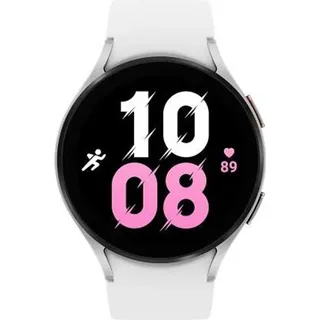 Fitness und ein bewusster Lebensstil sind dir genauso wichtig wie dein Style? Dazu passt die Galaxy Watch5 mit ihren vielseitigen Fitness- und Gesundheitsfunktionen und ihrem modernen Look. Das klassisch runde Aluminiumgehäuse ist angenehm zu tragen und lässt sich mit dem großen an optional erhältlichen Armbändern an deinen Style und an den Anlass anpassen. Das Deckglas ist erstmals bei einer Galaxy Watch aus Saphirglas. Das Material ist das dritthärteste transparente Material nach Diamanten und Moissanit und damit kratzunempfindlich und nahezu bruchsicher. Im Studio und auf der Strecke unterstützt dich die Smartwatch mit ihren personalisierten Fitnessempfehlungen beim Erreichen deiner Ziele. Hierbei greift sie auf verschiedene Messdaten zu: Bioelektrische Impedanzanalyse (BIA), Herzfrequenz, Schrittzahl, Blutsauerstoffsättigung und andere wichtige Werte. Die Galaxy Watch5 ist bis zu 5 ATM wassergeschützt, so dass du sie für das Schwimmtraining nutzen kannst. Auch ein unerwarteter Platzregen macht ihr nichts aus. Zu den weiteren Wellnessfunktionen gehören eine informative Schlafqualitätsanalyse und ein Frauenkalender. Werte deine Galaxy Watch5 mit Apps auf. Hierfür hat Google Wear OS ein umfangreiches spannender Apps von Streaming bis Sport. Freu dich über den ausdauernden Akku der Galaxy Watch5. Der hält bis zu 40 Stunden lang durch. Legst du die Smartwatch auf den Fast Wireless Charger, geht sie in nur 30 Minuten von 0 auf 45%. > Highlights - Smartwatch mit digitaler Lünette im modernen Aluminiumdesign - Genaue Tracking & Coaching-Funktionen (Schlafcoaching, BIA-Analyse und Frauenkalender) - 3,46 cm (1,4 Zoll) Always On Super AMOLED Display mit Saphirglas - Leistungsstarker Samsung BioActive Sensor (BIA, EKG und HR) - Vielseitige Funktionen für einen bewussten Lebensstil - Interner Speicher: 16 GB (davon 7,5 GB frei verfügbar) - Nutze Samsung Pay oder Google Pay - Automatische Sturzerkennung - Google Wear OS für Zugriff auf ein breitgefächertes App-Ecosystem - Wassergeschützt bis 5 ATM - Schutzklassen: IP68 und MIL-STD-810H - Sehr kurze Ladezeit durch Schnellladefunktion - Ausdauernder Akku mit bis zu 40 Stunden Laufzeit - Mobiler Internetzugang auch ohne Smartphone nutzbar dank LTE (über eSIM) > Produkttyp - Smartwatch - ear-Kategorie (ElektroG): relevant, Kategorie 5: Kleingeräte < 50 cm (alle Seiten), Kleingeräte B2C > Spezifikationen - Schutzklasse: IP68 - Staubdicht, Schutz gegen dauerndes Untertauchen, MIL-STD-810H - Gewicht (inkl. Akku): 33.5 g - Gehäusematerial: Aluminium - Armbandfarbe: Weiß - Armbandmaterial: Kautschuk - Armbandgröße: Einheitsgröße - Zifferblattfarbe: individualisierbar - Geschlecht: Unisex - Gehäuseform: rund - Verschlussart: Dornschließe - Armband wechselbar - Gehäusedurchmesser: 44 mm - Interner Speicher: 16 GB - Akkugewicht: 6.07 g > Speicher - Frei verfügbarer interner Speicher: 7.5 GB > Display - Displaydiagonale Zoll: 1.4 - - Displaydiagonale cm: 3.6 cm - Displaytechnologie: OLED - Farbdisplay - Touchdisplay - Displayglas: Saphirglas - Displayauflösung Höhe: 450 px - Displayauflösung Breite: 450 px - Anzeige: digital > Highlights - Smartwatch mit digitaler Lünette im modernen Aluminiumdesign - Genaue Tracking & Coaching-Funktionen (Schlafcoaching, BIA-Analyse und Frauenkalender) - 3,46 cm (1,4 Zoll) Always On Super AMOLED Display mit Saphirglas - Leistungsstarker Samsung BioActive Sensor (BIA, EKG und HR) - Vielseitige Funktionen für einen bewussten Lebensstil - Interner Speicher: 16 GB (davon 7,5 GB frei verfügbar) - Nutze Samsung Pay oder Google Pay - Automatische Sturzerkennung - Google Wear OS für Zugriff auf ein breitgefächertes App-Ecosystem - Wassergeschützt bis 5 ATM - Schutzklassen: IP68 und MIL-STD-810H - Sehr kurze Ladezeit durch Schnellladefunktion - Ausdauernder Akku mit bis zu 40 Stunden Laufzeit - Mobiler Internetzugang auch ohne Smartphone nutzbar dank LTE (über eSIM) > Produkttyp - Smartwatch - ear-Kategorie (ElektroG): relevant, Kategorie 5: