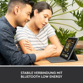Produktbeschreibung des Logitech Slim Folio Tastatur-CasesDas Logitech Slim Folio Tastatur-Case ist die ideale Lösung für iPad-Nutzer, die Wert auf Funktionalität und Komfort legen. Dieses Case ist speziell für die 10. Generation des iPads sowie die Modelle A16, A2696, A2757, A2777 und A3162 konzipiert. Es bietet nicht nur einen umfassenden Schutz für Ihr iPad, sondern integriert auch eine hochwertige kabellose Bluetooth-Tastatur mit deutschem QWERTZ-Layout.Komfortables Tippen und intuitive SteuerungDie Tastatur ist in Standardgröße und verfügt über großzügig angeordnete Tasten, die sich über die gesamte Breite des Covers erstrecken. Die speziellen iPadOS-Sondertasten ermöglichen Ihnen den schnellen Zugriff auf wichtige Funktionen wie Lautstärke und Multimedia-Bedienelemente, sodass Sie Ihre Arbeit effizient erledigen können.Langfristige Nutzung mit langer BatterielebensdauerEin besonderes Merkmal des Slim Folio ist die beeindruckende Batterielebensdauer. Mit zwei austauschbaren Knopfzellenbatterien und einem intelligenten Energieverwaltungssystem profitieren Sie von bis zu drei Jahren Nutzung, bevor ein Batteriewechsel erforderlich ist. Dies macht das Slim Folio zu einem zuverlässigen Begleiter für den täglichen Gebrauch.Zuverlässige Verbindung für eine reibungslose Nutzung So können Sie sich darauf verlassen, dass Ihre Eingaben immer schnell und präzise übertragen werden.FazitDas Logitech Slim Folio Tastatur-Case kombiniert Schutz, Komfort und Funktionalität in einem stilvollen Design. Es ist die perfekte Wahl für alle, die ihr iPad optimal nutzen möchten. Egal ob für berufliche Anwendungen oder private Nutzung, dieses Tastatur-Case bietet alles, was Sie benötigen, um produktiv zu bleiben. Logitech Slim Folio – Schutz und Komfort für dein iPadDas Logitech Slim Folio verwandelt dein iPad in einen leistungsstarken, mobilen Arbeitsplatz. Mit einer integrierten Tastatur und einem schlanken, eleganten Design bietet es nicht nur optimalen Schutz, sondern auch höchsten Schreibkomfort. Die gut dimensionierten Tasten mit einem angenehmen Tastenhub sorgen für eine präzise und leise Eingabe, vergleichbar mit einem Laptop.Das Logitech Slim Folio nutzt Bluetooth Low Energy (BLE) für eine zuverlässige Verbindung und lange Batterielaufzeit. Mit einer einzigen Knopfzellenbatterie hält das Slim Folio bis zu vier Jahre ohne Wechsel durch.Rundum Schutz & Komfortables TippenDas robuste Case schützt dein iPad zuverlässig vor Stößen, Kratzern und Spritzwasser. Es umschließt das Tablet sicher und sorgt gleichzeitig für eine stabile Standfunktion, mit der du den perfekten Betrachtungswinkel einstellen kannst. Dank der großzügigen Tastatur mit komfortablen Tasten und einem präzisen Tastenhubkannst du flüssig und angenehm schreiben. Die Tasten mit Scissor-Mechanismus sorgen für ein leises und reaktionsschnelles Tippgefühl.Integrierte Tastatur mit angenehmem Tastenhub für produktives ArbeitenSchutzhülle mit Standfunktion für verschiedene BetrachtungswinkelBluetooth-Verbindung für kabelloses Tippen ohne VerzögerungenLange Batterielaufzeit – bis zu vier Jahre mit einer KnopfzellenbatterieSpezieller Halter für den Apple Pencil oder Logitech CrayonKompatibilitätiPad A16iPad 10. Generation Genießen Sie jetzt ein erstklassiges Tipperlebnis, überall dort, wohin Sie Ihr iPad (10. Generation) mitnehmen. Dieses All-in-one-Case lässt sich ganz einfach verwenden und transportieren. Es schützt Ihr iPad vor Stößen und Kratzern. Wo auch immer Sie arbeiten – ob im Garten, am Schreibtisch oder sogar auf dem Schoß – Slim Folio sorgt für den optimalen Winkel zum Tippen, Surfen und Zeichnen. Highlights:Logitech SLIM Folio Tastatur Case für iPad 10.9" (10. Gen.)Schlankes Design mit Tastatur in StandardgrößeVollständige Tastenzeile mit iPadOS-SondertastenSicherer, passgenauer Schutz für Ihr iPadZwei fixierbare Blickwinkel für vielseitigen EinsatzIntegrierte Halterung für den Logitech Crayon oder Apple Pencil Technische Beschreibung:Pairing der Tastatur mit dem iPad übe