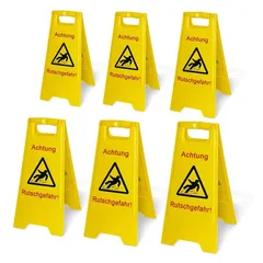 BRB-Lagertechnik BRB 6er-Set Warnschild Achtung Rutschgefahr, Aufstellhöhe 600 mm