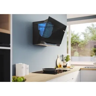 Design Schräg-Essen-Design Wandmontage Glasscheibe: schwarz bedruckt Wahlweise Abluft- oder Umluftbetrieb Bei Umluft kaminloser Betrieb möglich Für den Umluftbetrieb wird das Clean Air Plus Umluft-Set (Zubehör) oder das Longlife Umluft-Set (Zubehör) benötigt.Wichtigste Eigenschaften EcoSilence Drive Beleuchtung: 2 Stck, LED, 3 W, mit Farbtemperatur einstellbar SoftLight: die Beleuchtung schaltet sich sanft ein und aus. Dimm-Funktion: die Helligkeit der Beleuchtung kann eingestellt werden. Farbtemperatur: 3500 K Beleuchtungsstärke: 422 lux Boost Position: Zwischenstellen der Glas-Filterabdeckung, um besonders starke Kochgerüche und Dampfmengen besser abzusaugen. Dunstabzug an Vorder- und Unterseite 3 MetallfettfilterKomfortfunktionen PerfectAir Luftgütesensor: Automatische sensorgestützte Leistungssteuerung für beste Ergebnisse DirectSelect Control 3 Leistungsstufen + 2 Intensivstufen Automatisches Zurücksetzen von Intensiv- auf Normalstufe nach 6 Min. Sättigungsanzeige für Fett - und Geruchsfilter Nachlaufautomatik: 10 MinutenDigitale Funktionen Home Connect: Bedienung, Überprüfung und Einstellung Ihrer Haube über Smartphone oder Tablet (nur in Ländern, in denen der Home Connect-Service verfügbar ist) Die kochfeldbasierte Haubensteuerung aktiviert die Dunstabzugshaube automatisch beim Kochen, dank der WiFi-Verbindung von Dunstabzugshaube und einem geeignetem Kochfeld. Vollautomatischer Dunstabzug Sprachsteuerung über gängige Sprachassistenten möglich Leistungsprofile: Wählen Sie in der Home Connect App zwischen Standard, Leistung oder Leise, um die Absaugleistung zu erhöhen oder das Lüftergeräusch zu reduzieren. Favoriten Taste: ja - direkter Zugriff auf Lieblingsfunktionen über eine konfigurierbare Taste (verfügbar mit verbundenem Home Connect-Konto). Smart Home Trigger über die Favoritentaste (verfügbar mit verbundenem Home Connect Konto): Öffnen Sie das intelligente Universum Ihres Dunstabzugs aus (Partnerdienst erforderlich). LED-Beleuchtung mit einstellbarer Lichttemperatur: Ermöglicht Ihnen die Anpassung der Lichttemperatur an Ihre persönlichen Bedürfnisse über die Home Connect App Intervallfunktion: verfügbar über Home Connect App Die Home Connect Funktionalität lässt sich durch die Einbindung zahlreicher Anwendungen externer Kooperationspartner (Partnering) beliebig erweitern Aktualisierbares Gerät (verfügbar mit verbundenem Home Connect-Konto): Halten Sie das Gerät immer auf dem neuesten Stand der Software.Komfort bei der Reinigung Extrem großer Öffnungswinkel für eine leichte Zugänglichkeit der Filter und eine einfache Reinigung. Die Oberflächen und Materialien sind glatt und leicht zu reinigen. Innenrahmen, reinigungsfreundlich Metallfettfilter, spülmaschinengeeignetLeistung Abluft Gemäß EN 61591 und EN/IEC 60704-2-13 kann Ihr Gerät im Abluftbetrieb folgende Werte erreichen: Leistungsstufe 1: Lüfterleistung:228 m3/h; Geräuschwert: 35 dB(A) re1pW Leistungsstufe 2: Lüfterleistung:325 m3/h; Geräuschwert: 43 dB(A) re1pW Leistungsstufe 3: Lüfterleistung:441 m3/h; Geräuschwert: 51 dB(A) re1pW Intensivstufe 1: Lüfterleistung:753 m3/h; Geräuschwert: 65 dB(A) re1pW Intensivstufe 2: Lüfterleistung:1007 m3/h; Geräuschwert: 70 dB (A) re1pW )* Auf einer Skala von A+++ (sehr effizient) bis D (weniger effizient) Durchschnittlicher Energieverbrauch: 39.1 kWh/Jahr* Lüfter-Effizienzklasse: A* Beleuchtungs-Effizienzklasse: A* Fettfilter-Effizienzklasse: C*Leistung Umluft Gemäß EN 61591 und EN/IEC 60704-2-13 kann Ihr Gerät im Umluftbetrieb mit dem Umluft-Set Clean Air plus, für die Installation mit Kamin, folgende Werte erreichen: Leistungsstufe 1: Lüfterleistung:211 m3/h; Geräuschwert: 42 dB(A) re1pW Leistungsstufe 2: Lüfterleistung:315 m3/h; Geräuschwert: 51 dB(A) re1pW Leistungsstufe 3: Lüfterleistung:435 m3/h; Geräuschwert: 59 dB(A) re1pW Intensivstufe 1: Lüfterleistung:752 m3/h; Geräuschwert: 72 dB(A) re1pW Intensivstufe 2: Lüfterleistung:964 m3/h; Geräuschwert: 78 dB (A) re1pW Gemäß EN 61591 und EN/IEC 60704-2-13 kann Ihr Gerät i