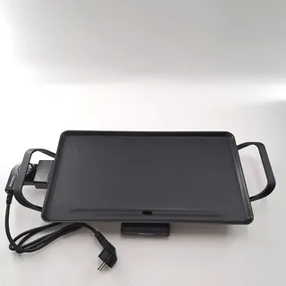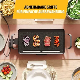 Tristar Slim M – Großzügige Backfläche von 46 x 26 cm – Antihaftbeschichtung – Abnehmbare Cool-Touch Griffe – Einstellbarer Thermostat – Leicht zu reinigen – BP-2667 Tischgrill Silber, Schwarz